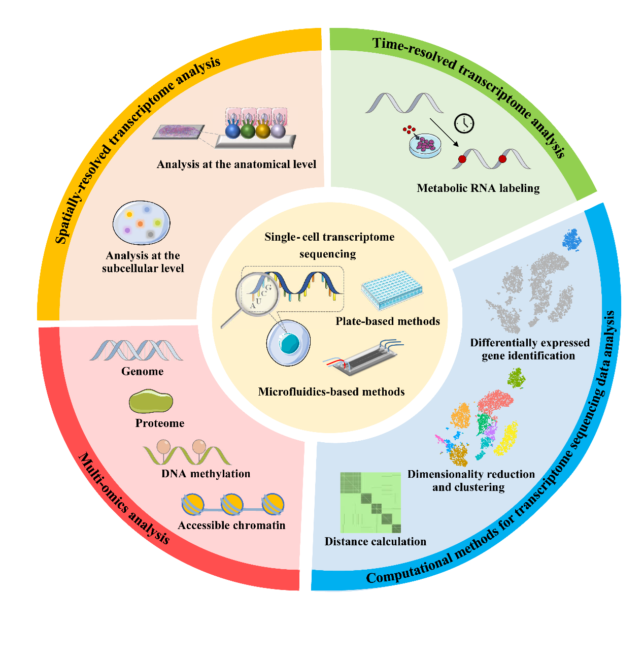 Cells are the basic building blocks of biological systems, with inherent unique molecular features and development trajectories. The study of single cells facilitates in-depth understanding of cellular diversity, disease processes, and organization of multicellular organisms. Single-cell RNA sequencing (scRNA-seq) technologies have become essential tools for interrogation of gene expression patterns and the dynamics of single cells, allowing cellular heterogeneity to be dissected at unprecedented resolution. Nevertheless, measuring at only transcriptome level or one dimension is incomplete; the cellular heterogeneity reflects in multiple dimensions, including the genome, epigenome, transcriptome, spatial, and even temporal dimensions. Hence, integrative single cell analysis is highly desired. In addition, the way to interpret sequencing data by virtue of bioinformatic tools also exerts critical roles in revealing differential gene expression. Here, we provide a comprehensive review that summarizes the cutting-edge single-cell transcriptome sequencing methodologies, including scRNA-seq, spatial and temporal transcriptome profiling, multi-omics sequencing and computational methods developed for scRNA-seq data analysis. Finally, we discuss the challenges and perspectives of this field.